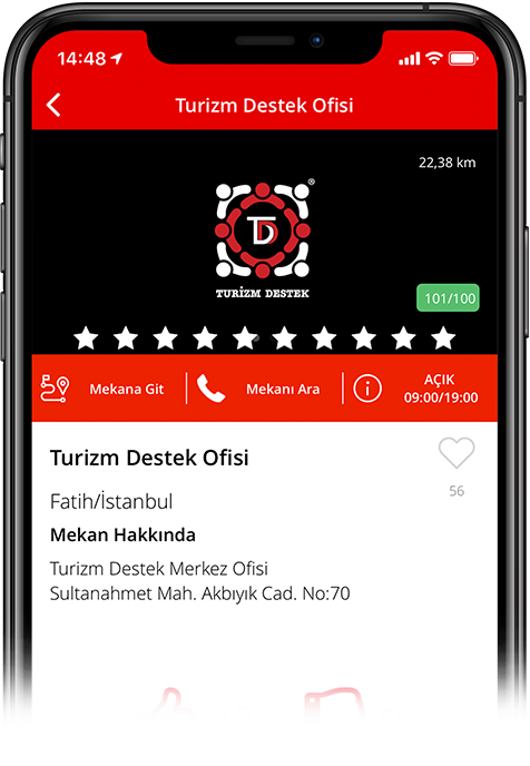 Turizm Destek Mobil Uygulamasındaki popüler mekanlar arasına katılın ve uygulamayı kullanan binlerce kişinin ayrıcalıklı hizmetlerinizden faydalanmasını sağlayın.
