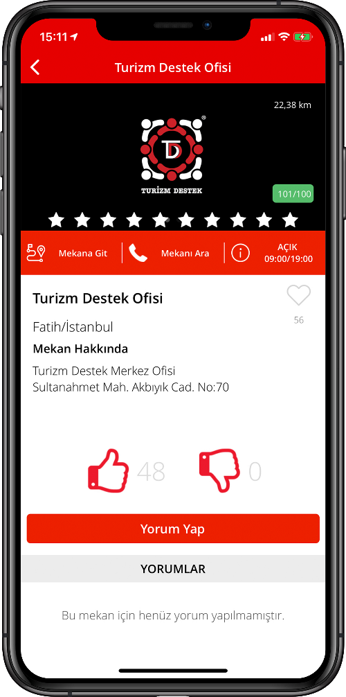 Turizm Destek Mobil Uygulaması mekanınızın tüm navigasyon sistemleri ile uyum içinde